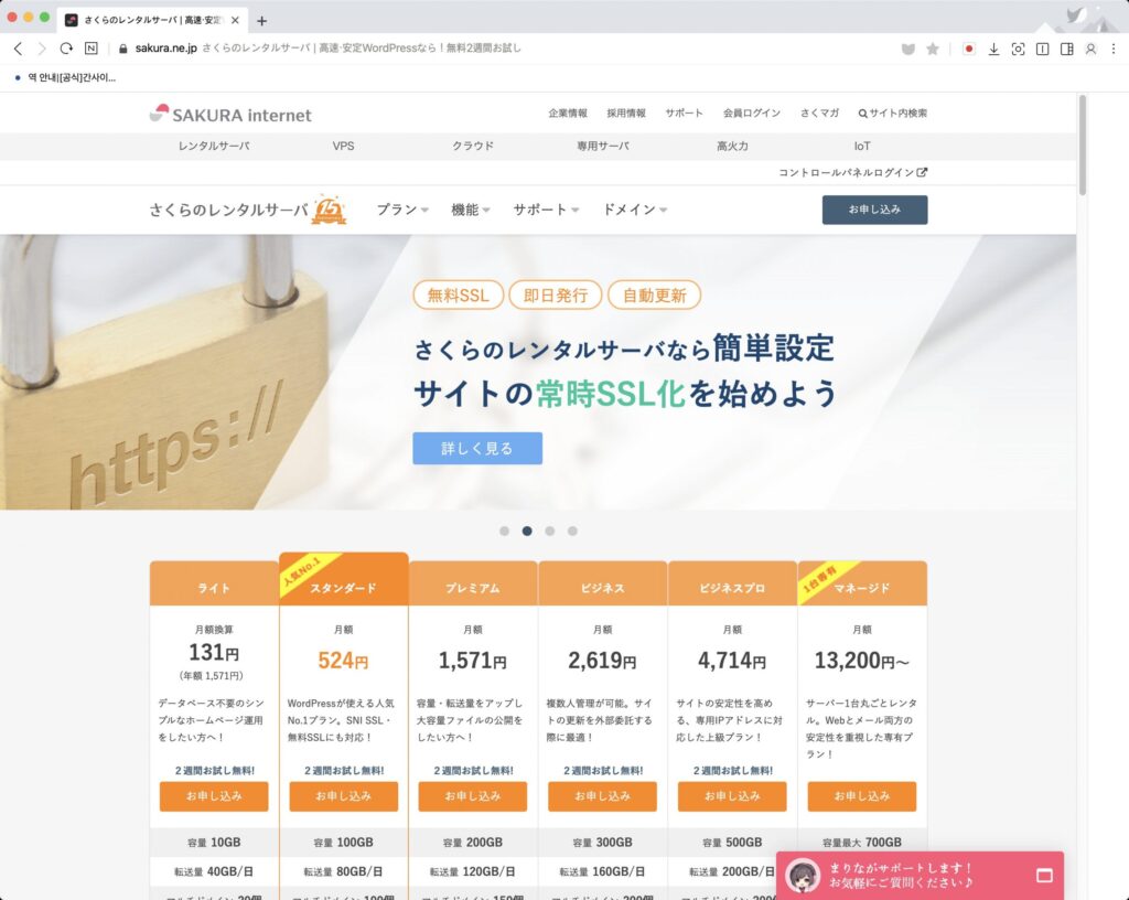 일본 사쿠라호스팅 회사(https://www.sakura.ne.jp)에